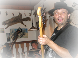 V domácích podmínkách byla situace jiná - tam byl čas a klid, možnost pustit si přesně to, co bylo potřeba slyšet, tak hlasitě, jak to bylo potřeba slyšet, a displeje si mohl před nahráváním prohlížet libovolně dlouho. Věcí připravených k nahrání bylo v šuplících víc než dost, ale odchod z živého hraní neproběhl tak rychle, jak by se dalo očekávat - prostě to ještě nedozrálo. A tak se Vladyk ještě u živého hraní pozdržel a vrátil se ke kořenům, to jest ke kytaře a k blues. Vymyslel si projekt Blue Pig (Blue jako blues a Pig jako prase, protože na kytaru hrál jako prase), sestavil si playlist, na Petrovi vyloudil grafický návrh plakátu a uvažoval o sestavě, kterou požádá, aby to s ním odehrála jako derniéru. Po několika týdnech cvičení ovšem dospěl k závěru, že takovou šupu by si jak případní spoluhráči, tak případní posluchači fakt nezasloužili. Myšlenku na skok do blues ovšem nezavrhl - a protože v té době psal nějaké texty pro Karol a její projekt Tukuturi, odvážil se dotázat této skvělé dívky, zda by s ním ta připravená blues neodehrála na dvoje klávesy - když už atyp, tak pořádnej... jako třetího do sestavy oslovil Pigiho, výborného hráče na bicí a někdejší oporu Surového Stefana, se kterým jako s jediným členem té prolínající se smečky rumburských muzikantů ještě nikdy nehrál... příležitost vystoupit se naskytla v létě na lokálním festiválku, kde měla hrát Karol s Tukuturi a Vladyk se mohl celkem bez problémů vmáčknout jako předkapela. Úmysl rozhlásit svou derniéru nakonec opustil - prostě končí další dědek, co je komu do toho. Akce proběhla formou jamu v komorním prostředí s několika desítkami posluchačů a Vladyk se rozhodl, že jako teda dobrý, ale že si ta blues později natočí s pořádnou aranží.
